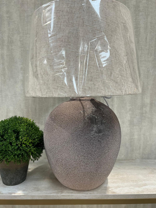 57cm Brown Stone Finish Table Lamp With Natural Linen Shade