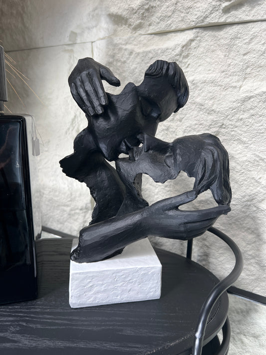 27.8cm Black Polyresin Kissing Couple with White Base Figurine