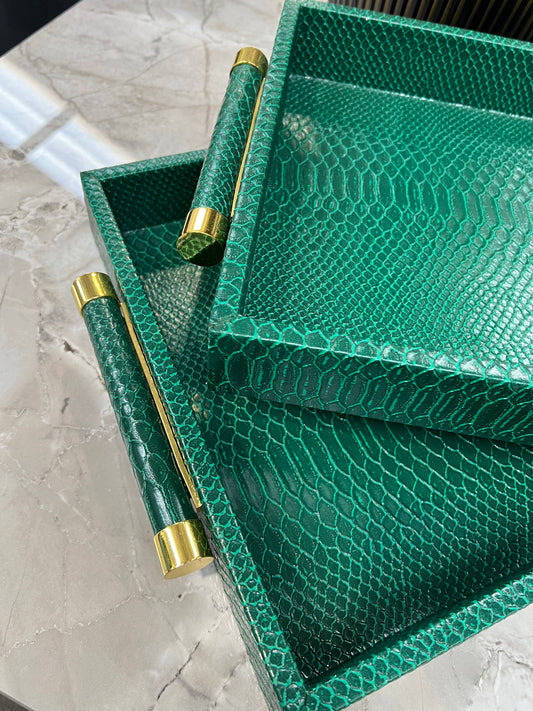 Set of 2 Black Faux Litchi Jewellery Boxes