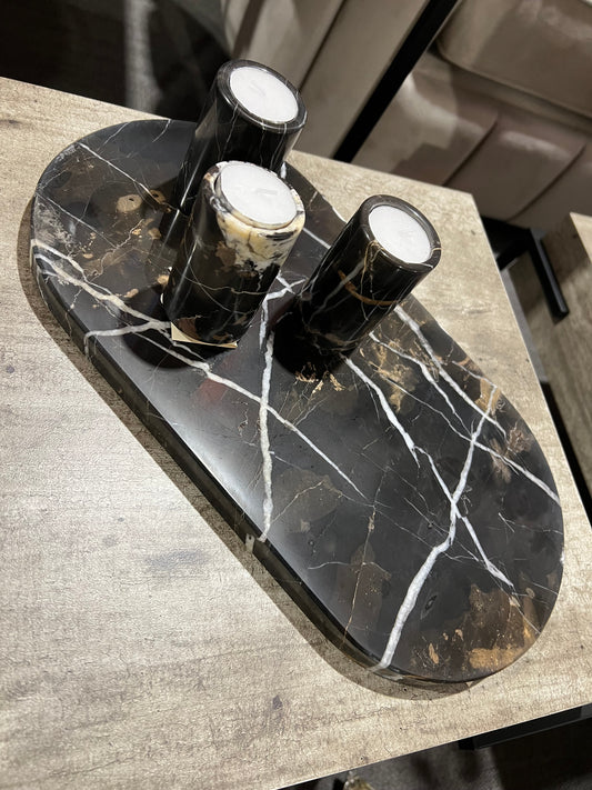 Set of 2 Black Metal Nesting Tables with Spiral White Top