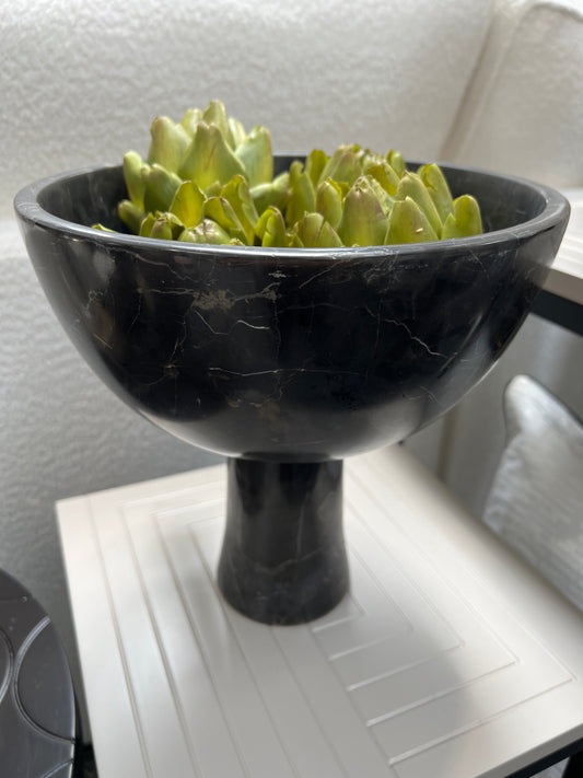 Salmo Large Black Marble Pedastol Bowl
