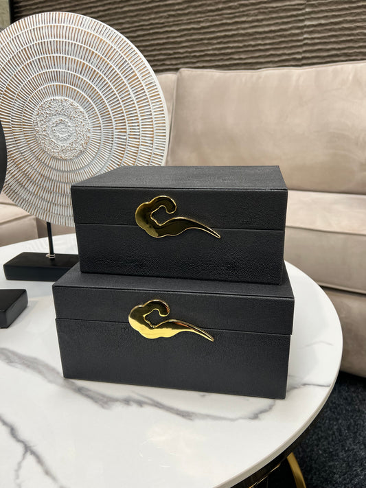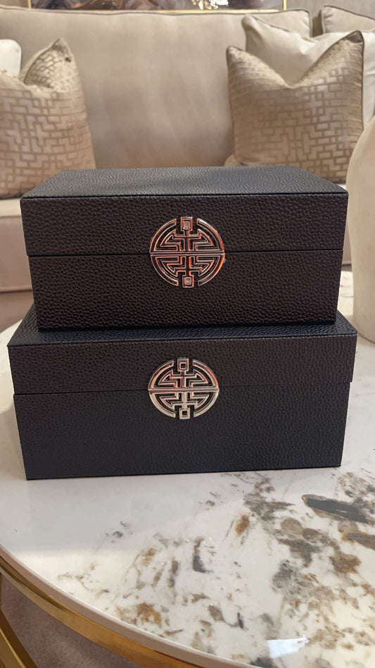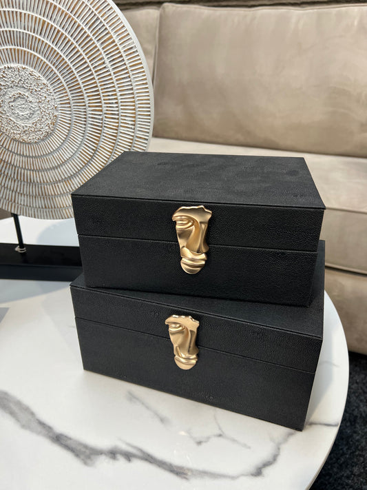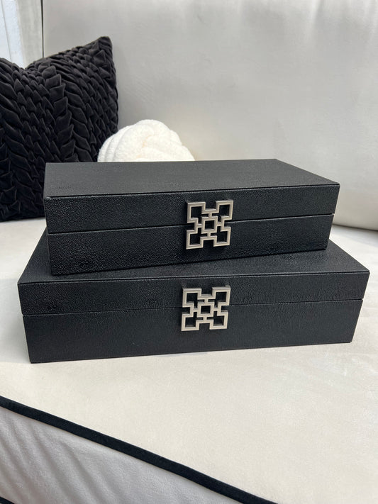 Black Faux Litchi Leather Face Jewellery Boxes, Set of 2