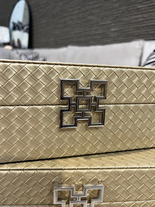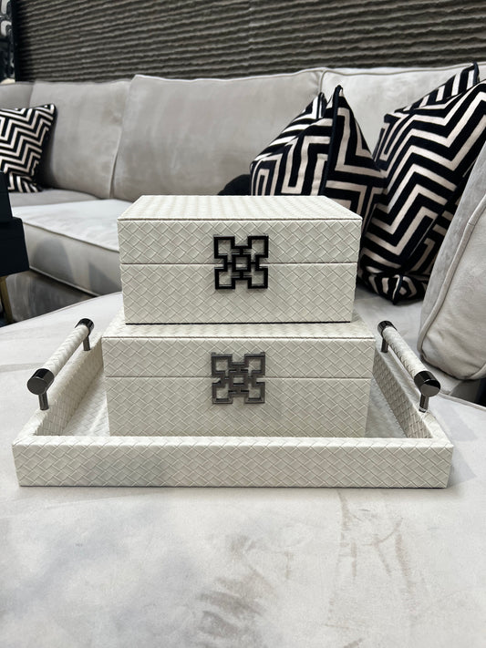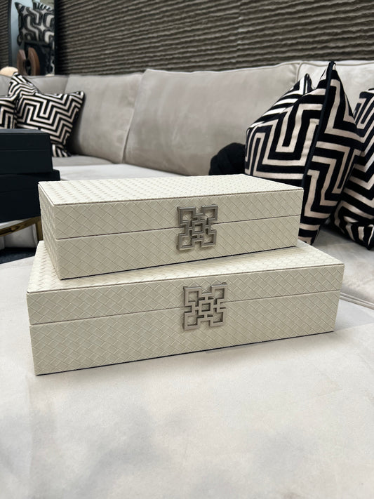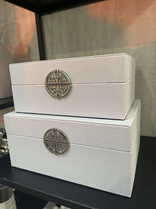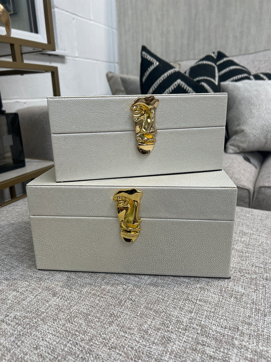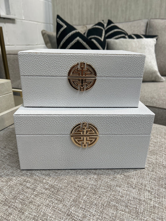 White & Gold Faux Leather Jewellery Boxes, Set of 2