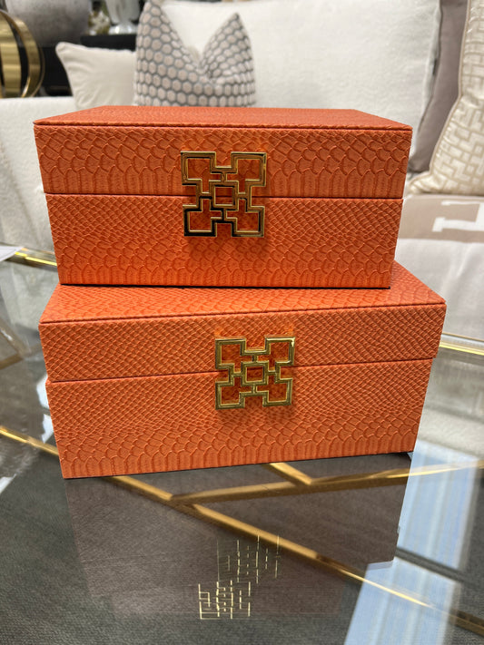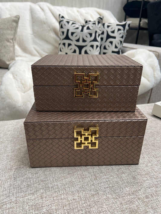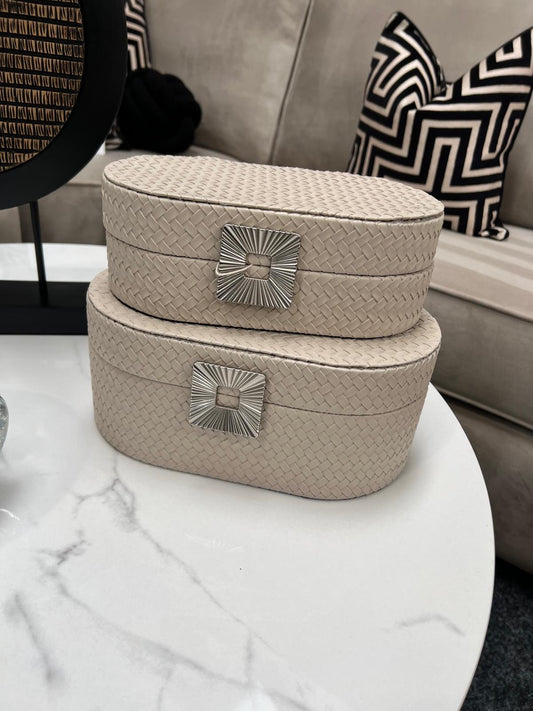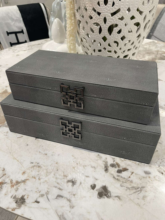 Grey Faux Litchi Leather Jewellery Boxes, Set of 2