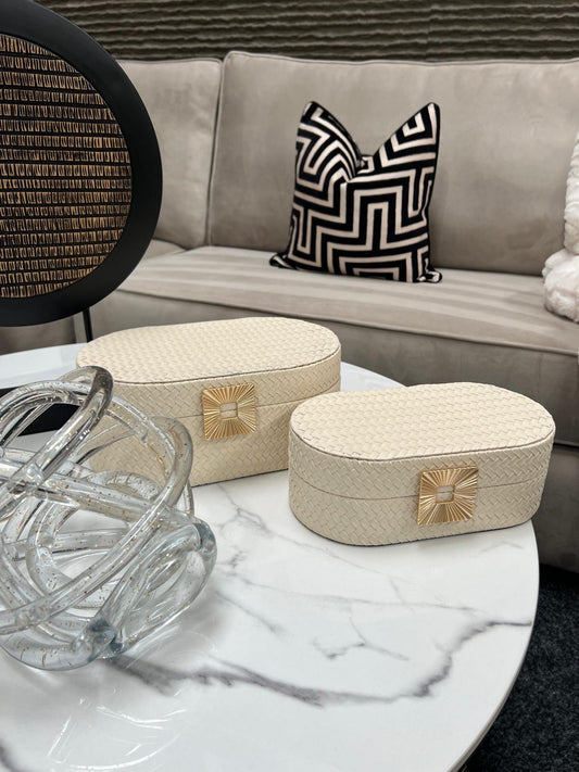 Set of 2 Cream Faux Leather Jewellery Boxes