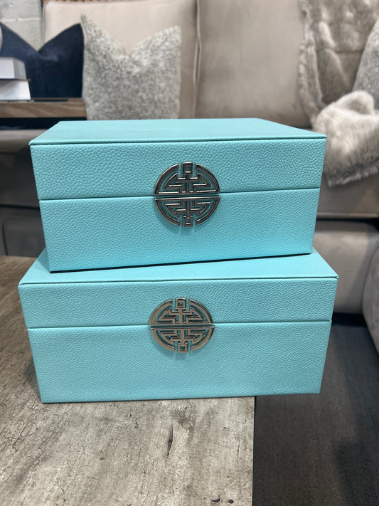 Tiffany Blue Faux Leather Jewellery Boxes, Set of 2