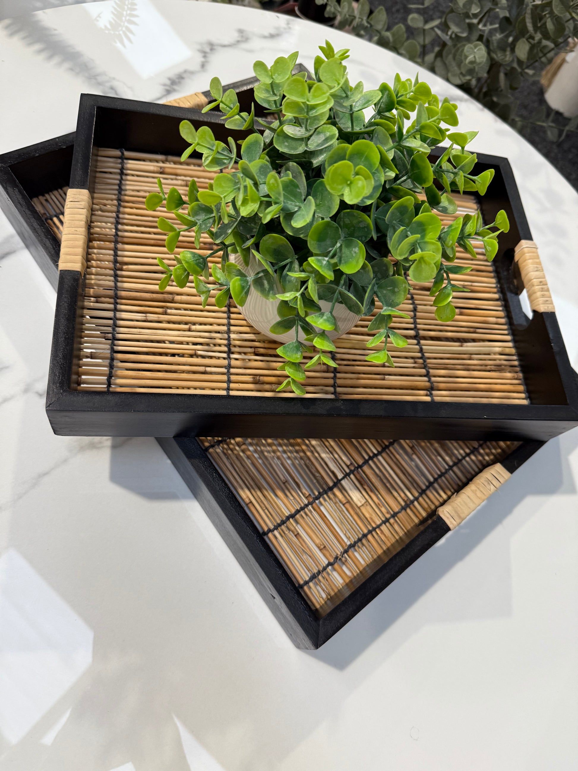 Our Bamboo Tray set with black wooden sides is the perfect set for all you boho lovers, with 2 handles either side can be styled as a set or individually.