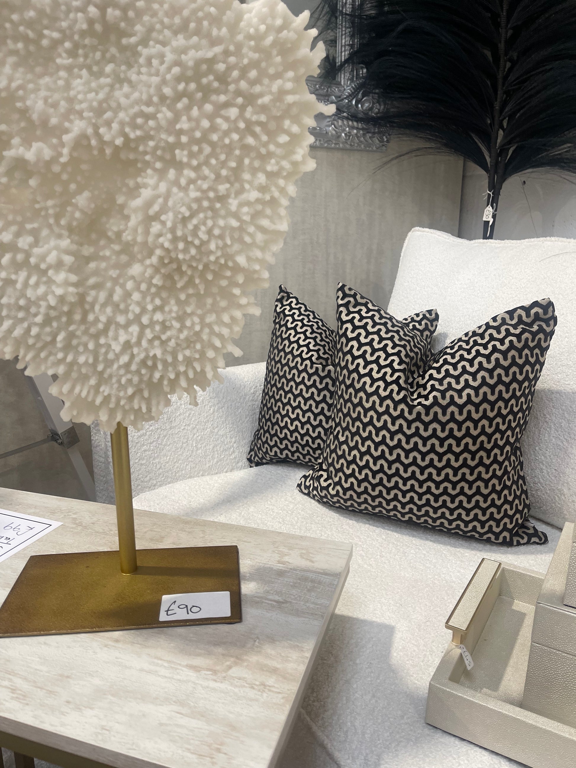 Tactile Cut Velvet Cushion with a Ripple Wave Pattern