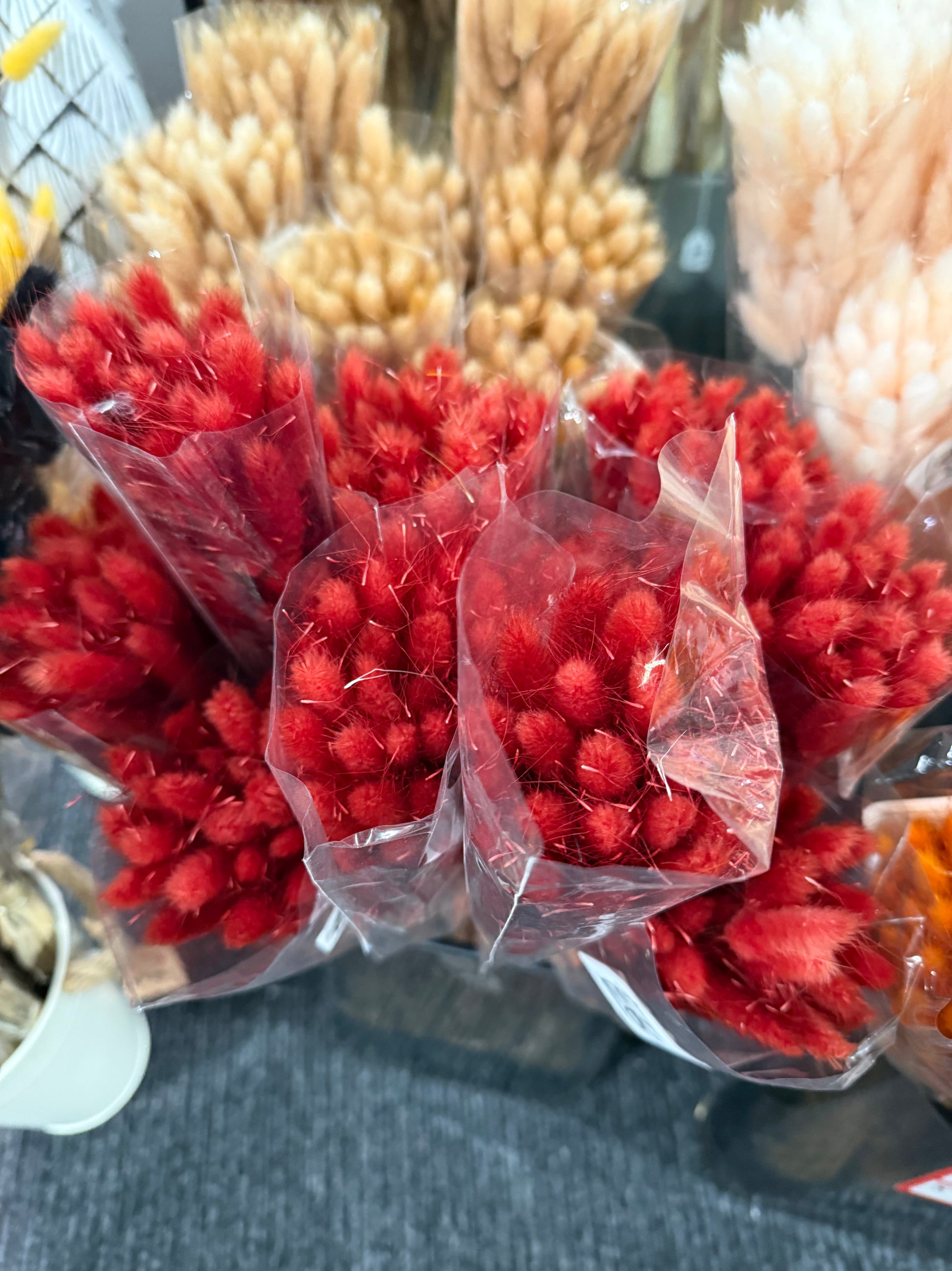Our dried stems in a crisp colours look fantastic alone in a slim necked, short stem vase or interspersed amongst pampas grass and other dried flowers for a 'fuller' looking arrangement. Approx 50 per pack.