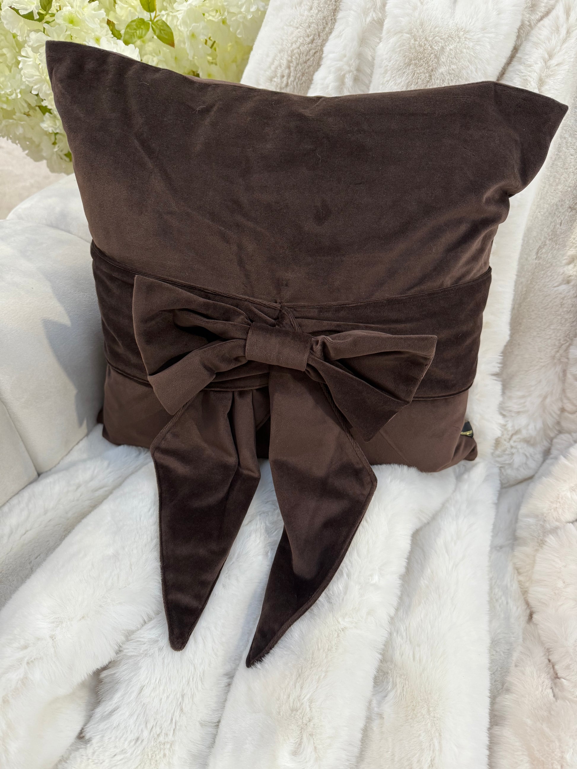 Why not spruce up your sofa or bedroom with our new Choc Bow Tie Cushion In chocolate velvet, they are luxurious and elegant to add to any room decor.