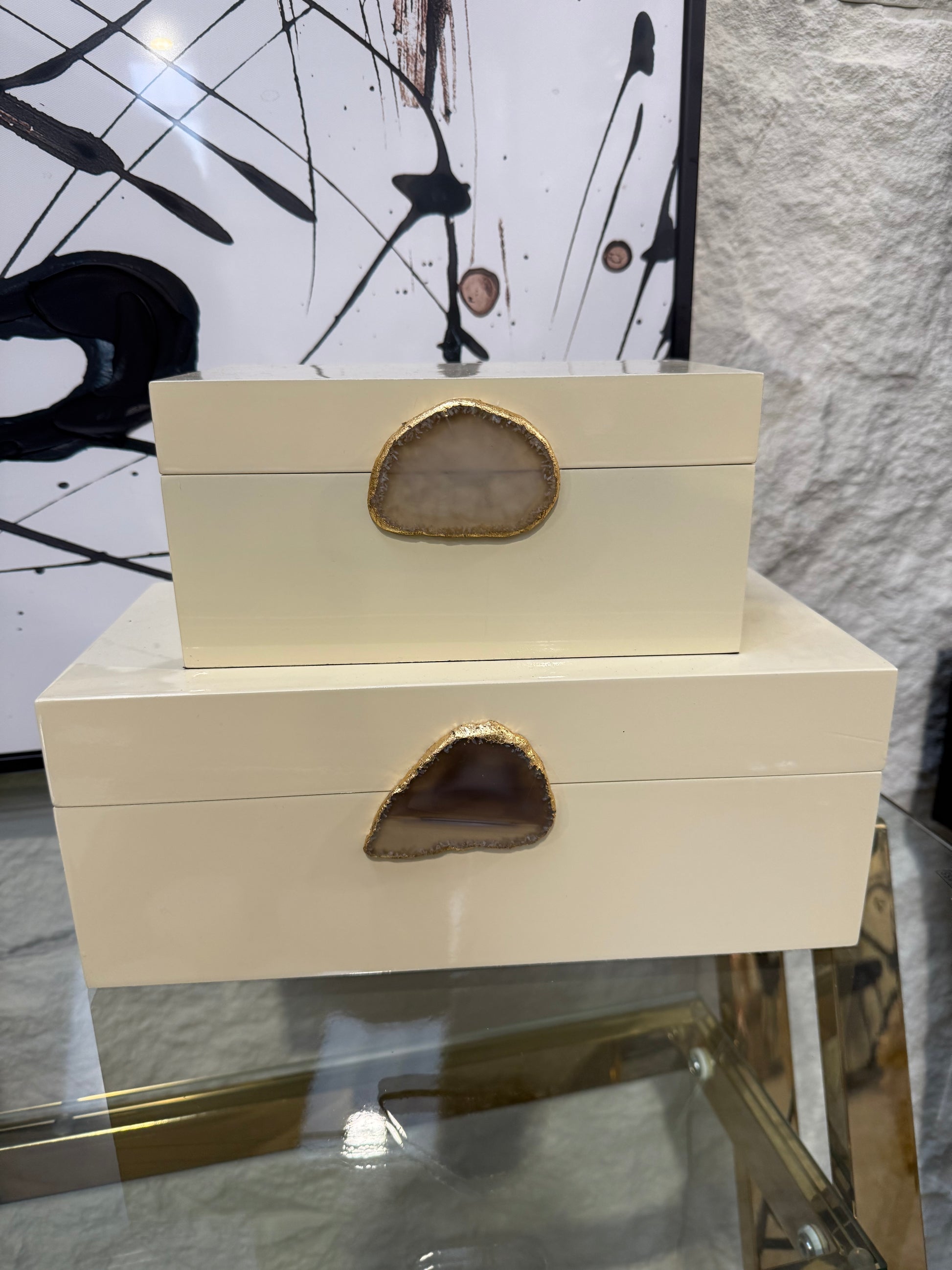 Our Cream Gloss Box Set with Agate clasp are the perfect luxurious set to add to your dressing table, with the added gold detailing to the Agate clasp.