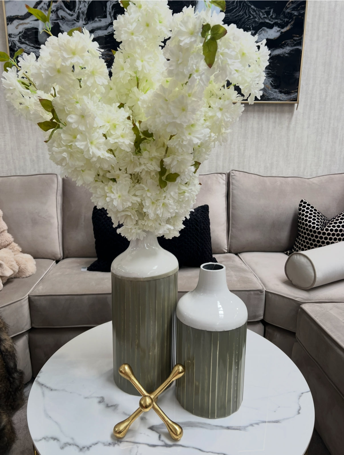 Our beautiful Sage Green Metal Vase Collection is a great addition for all you green lovers, with the ribbed sage green colour to the base and the cream top is just oozing sophistication. Can be styled with our faux flowers or they are stunning on their own.